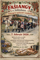 Milí spoluobčania, Srdečne Vás pozývame na Fašiangy v Soblahove, ktoré sa uskutočnia v sobotu dňa 7.2.2026. Pripravte si masky, veselú náladu a pridajte sa k fašiangovému sprievodu našou obcou.